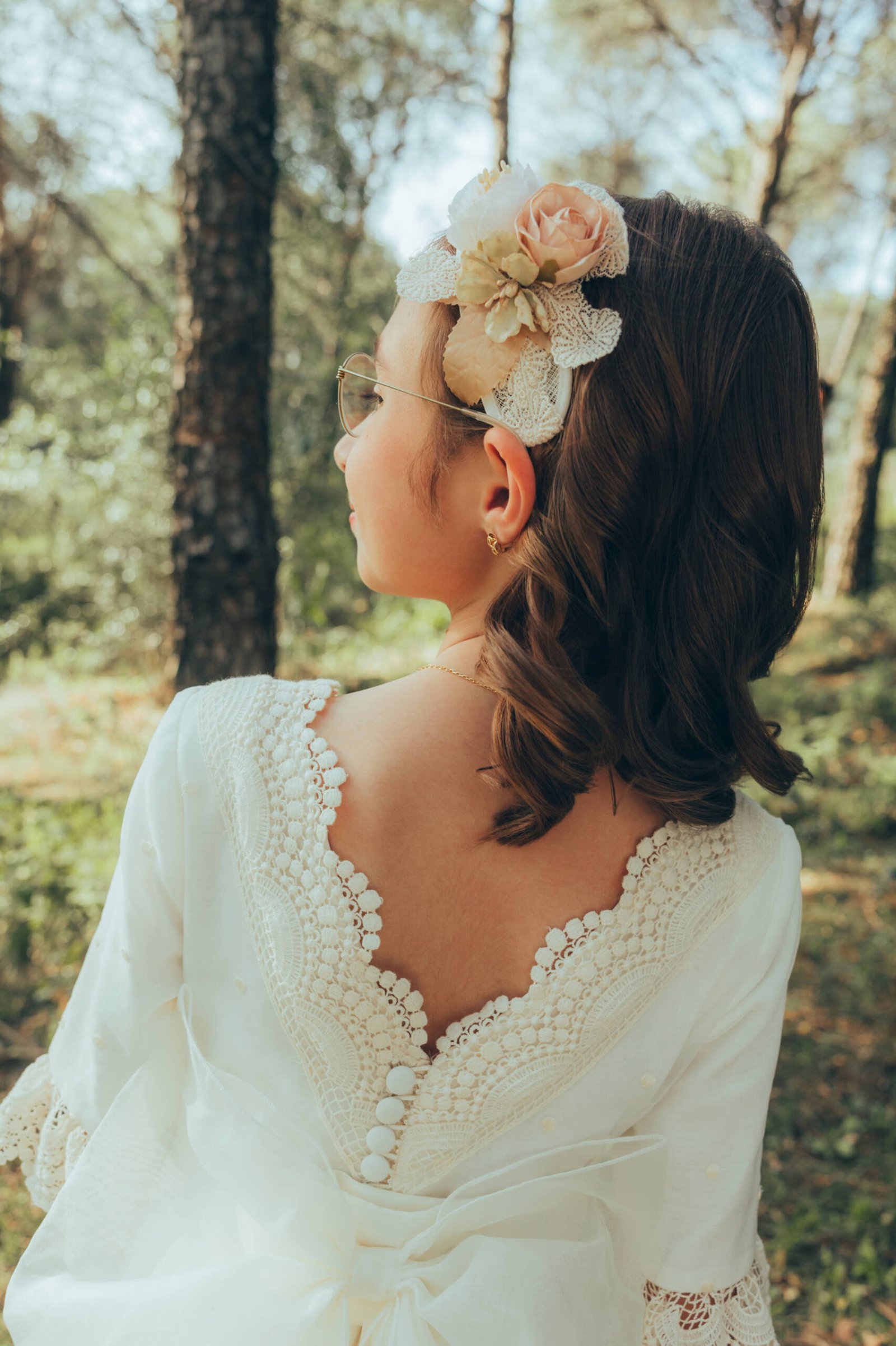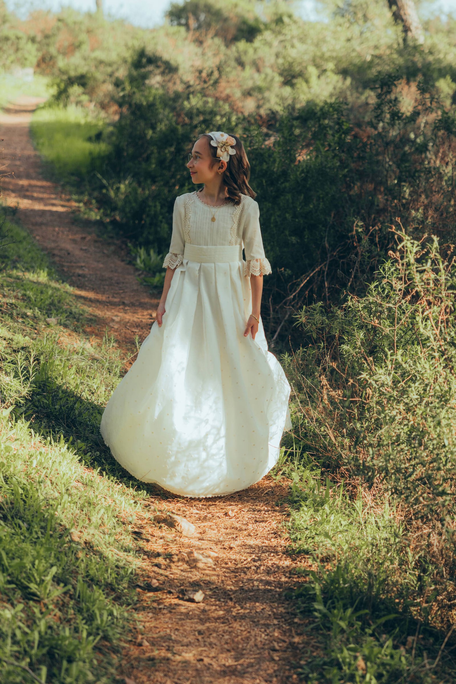 Eso es lo que más me gusta de la fotografía de comunión en Córdoba cuando se trabaja desde la verdad. Que no se trata de fabricar momentos, sino de reconocerlos cuando aparecen. Gabriela caminaba entre la naturaleza con una calma que no se puede fingir. Miraba, tocaba las hojas, se paraba sin prisa, y en cada uno de esos pequeños gestos iba dejando una imagen que tenía sentido de verdad.